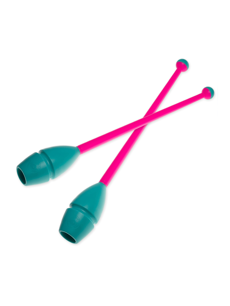Двухцветные комбинированные юниорские булавы для художественной гимнастики.